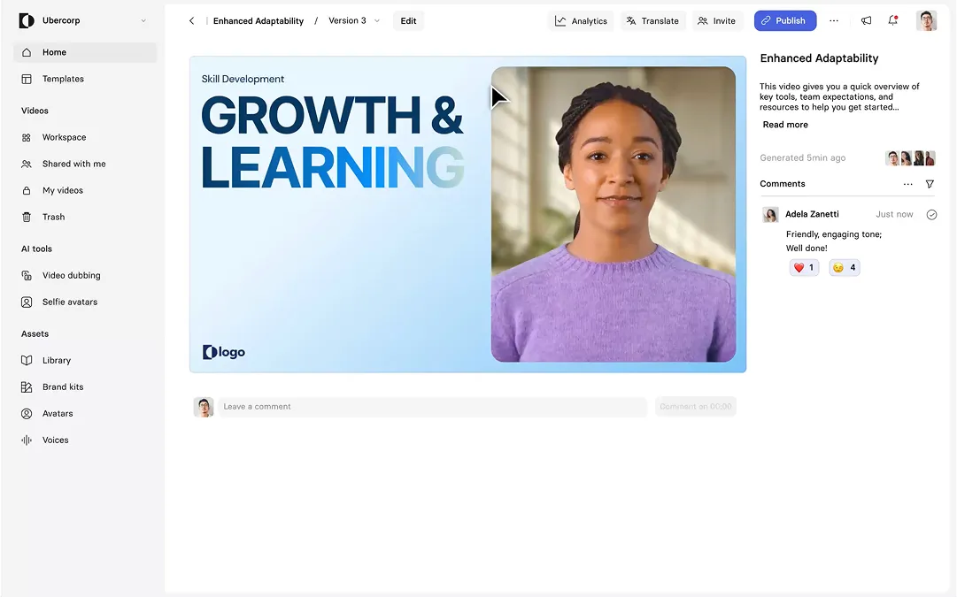Create, collaborate, comment and review AI videos in real-time. All in one place.